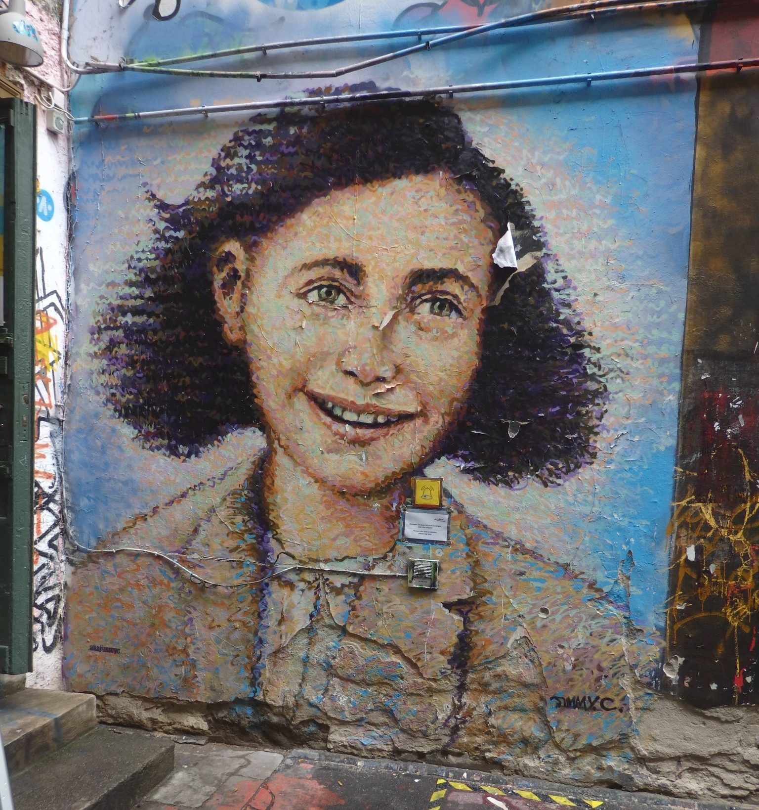 This was the kind of street art I had come to see. I wandered around the courtyard, and noticed some interesting details, like these small images: